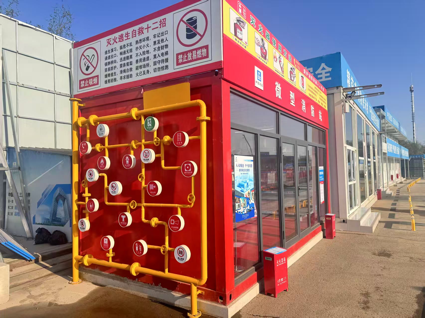据了解,工地可燃杂物较多,一旦出现火情,若救援不及时,火势蔓延可能造成无法挽回的后果。为保障施工现场消防安全,提高灭火救援速度,丰台区消防救援支队与区住建委携手,在中建二局园博园项目施工现场试点建造了一座功能完备的微型消防站。